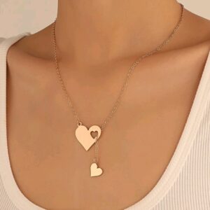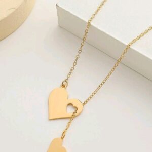 Cadena de 2 corazones grande y pequeño acero inoxidable color Oro.