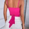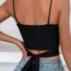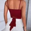 Con tirantes cruzado al frente y amarre atrás.