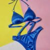 Traje de baño Bikini azul Real 2 piezas con aros en tiras