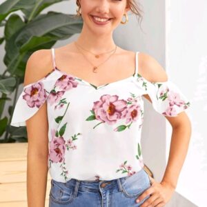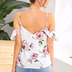 Blusa de tirantes y hombros descubiertos blanca estampada