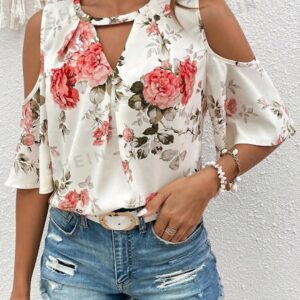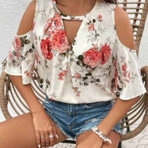 Blusa estampada de hombros descubiertos talla L