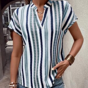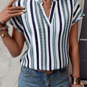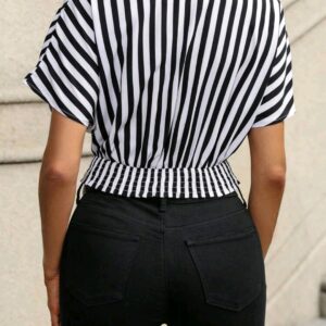 Blusa de Rayas negras cruzada al frente con goma ajustada en la espalda S M