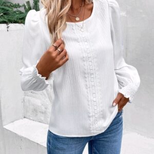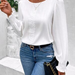 Blusa Manga Larga Blanca con pliegues y encaje M L