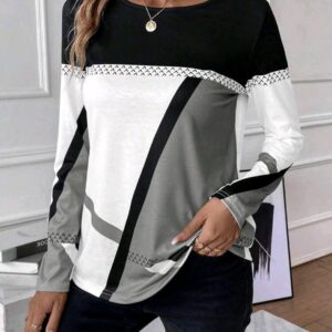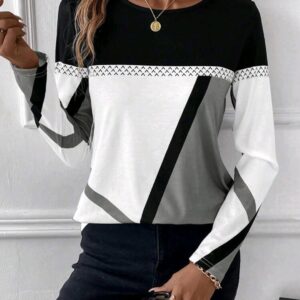 Manga larga cuello redondo blanco, gris y negro M XL