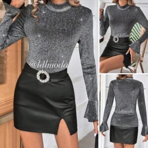 Manga Larga hombros descubiertos en negro y albaricoque L