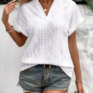 Blusa Blanca tejida manga corta murciélago M L
