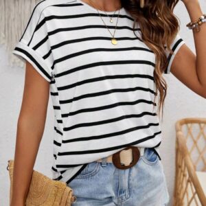 Blusa blanca rayas negras stretch M L